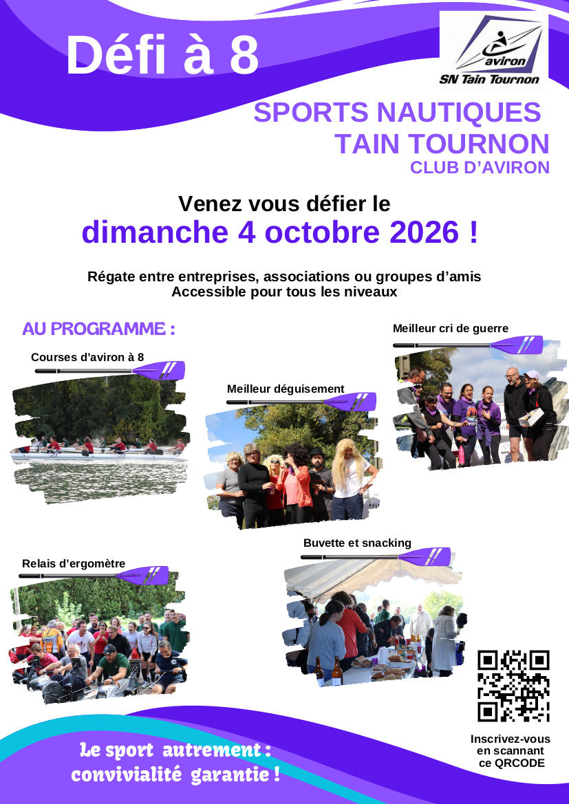 Plus d'informations ci-dessous ou nous contacter par e-mail defi8@avirontaintournon.fr