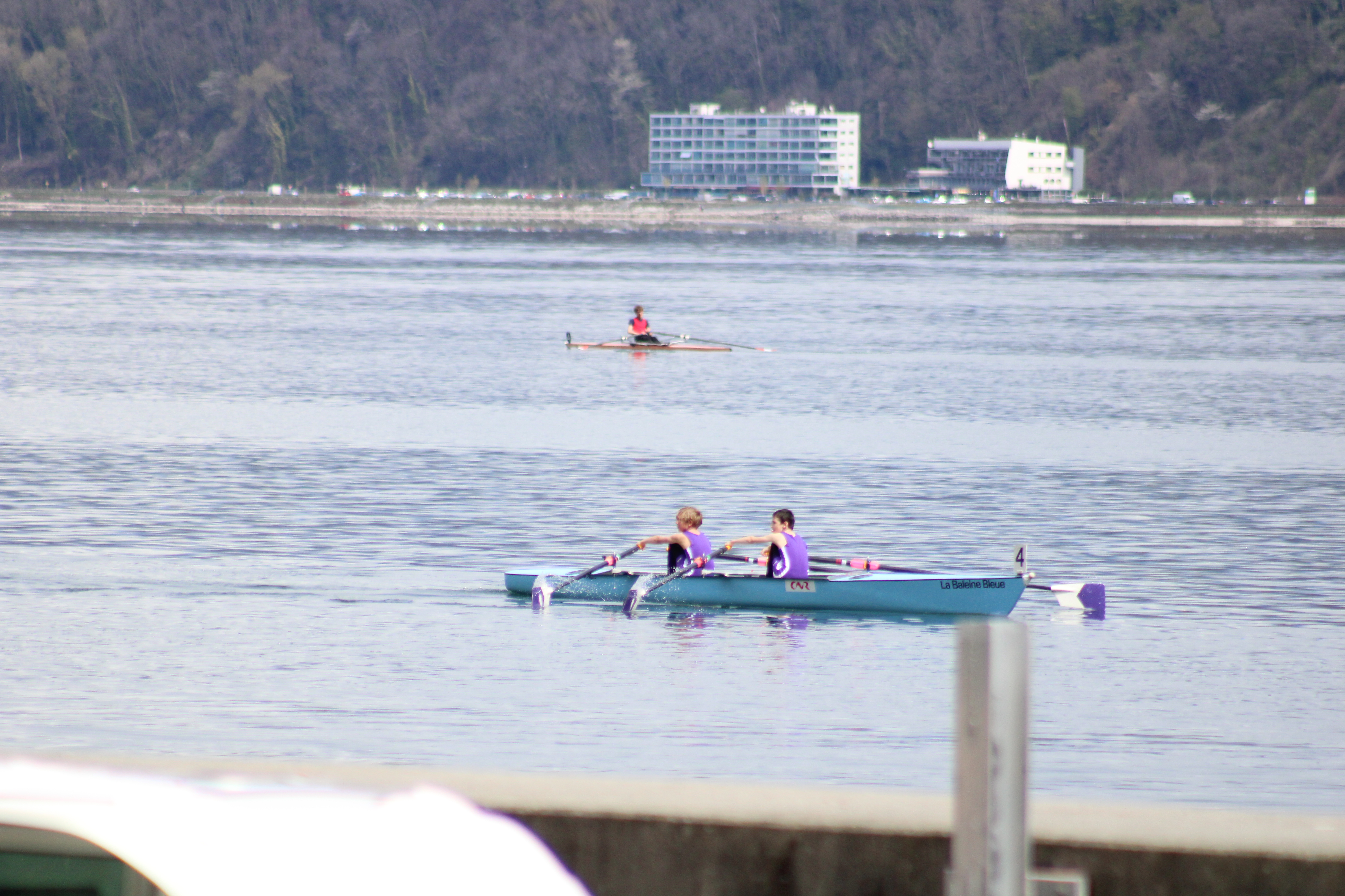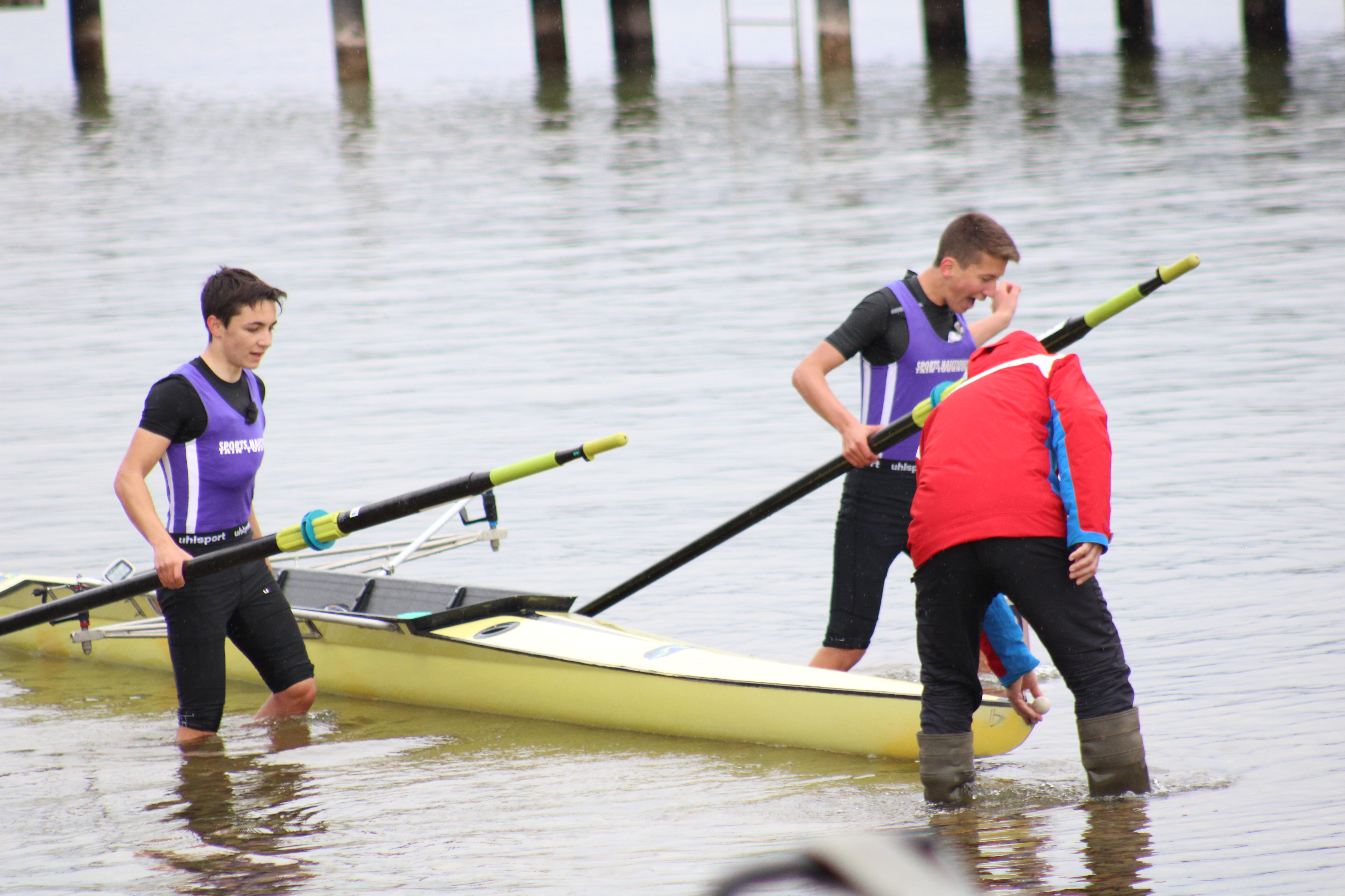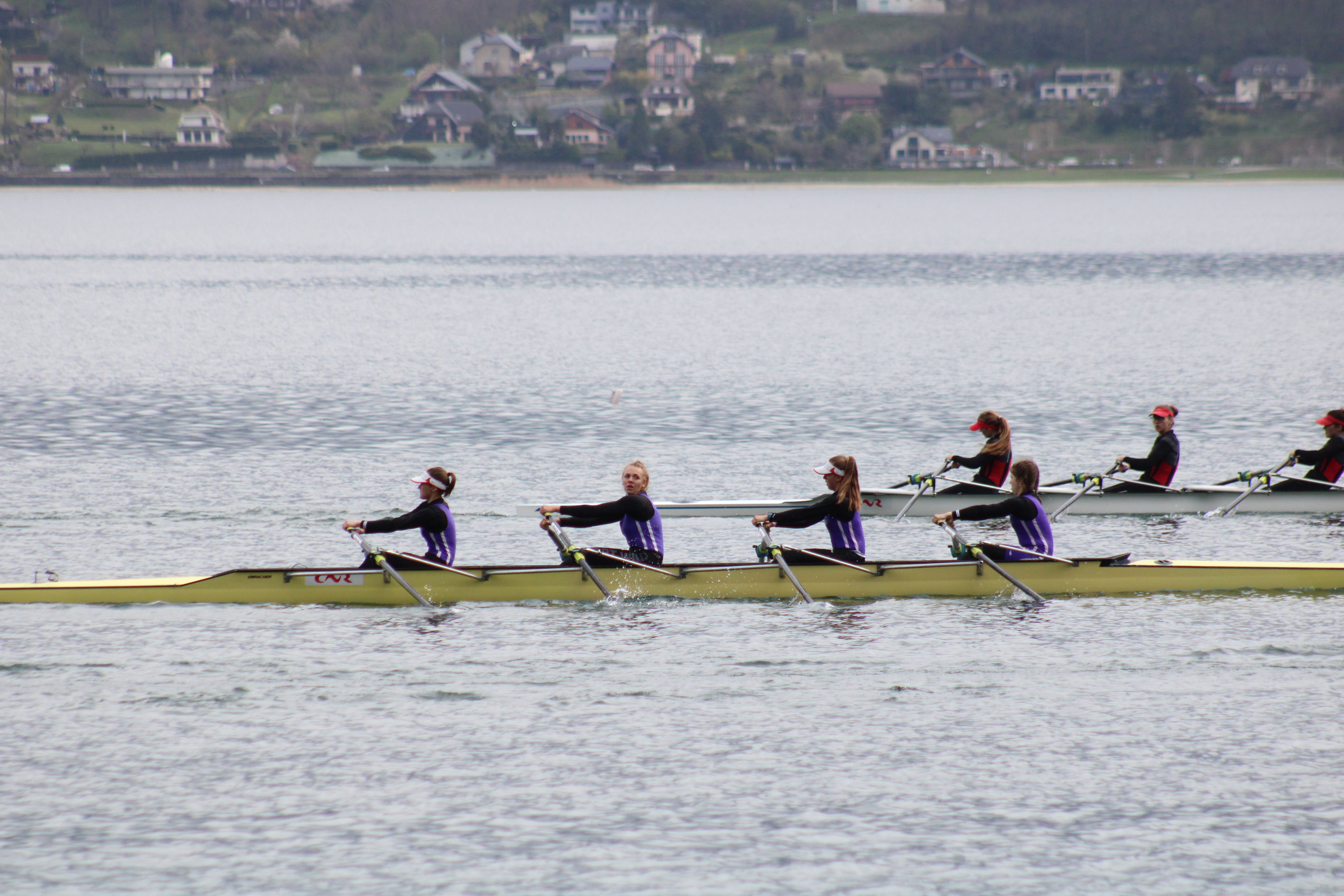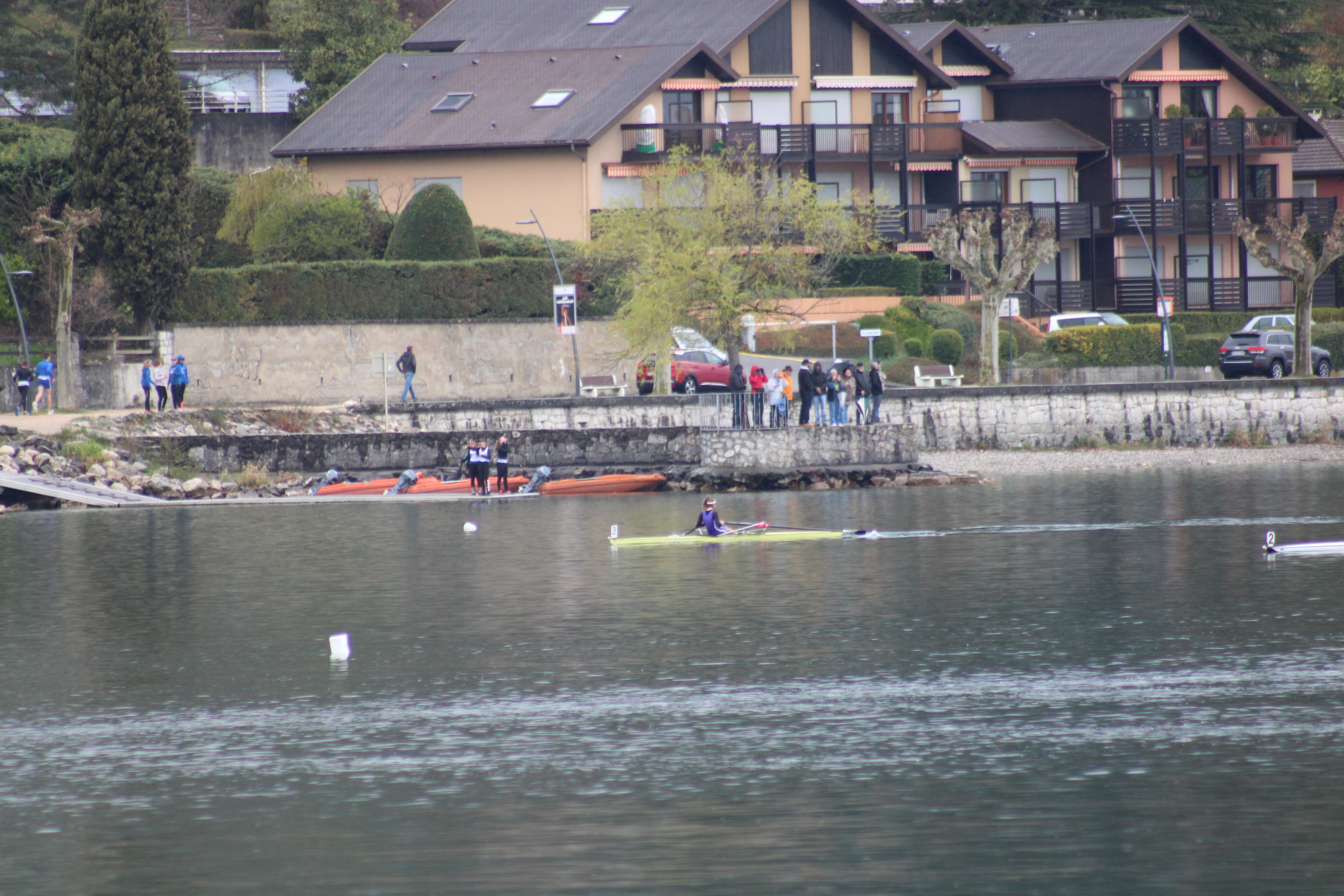 Après un changement de roue sur l’autoroute mais avec un »super papa » bien équipé nous sommes arrivés juste à l’heure pour les courses, la météo fut clémente seulement entre 11h et 15h, le reste de la journée la pluie a pris le dessus. De belles courses pour tous nos jeunes et moins jeunes rameurs.